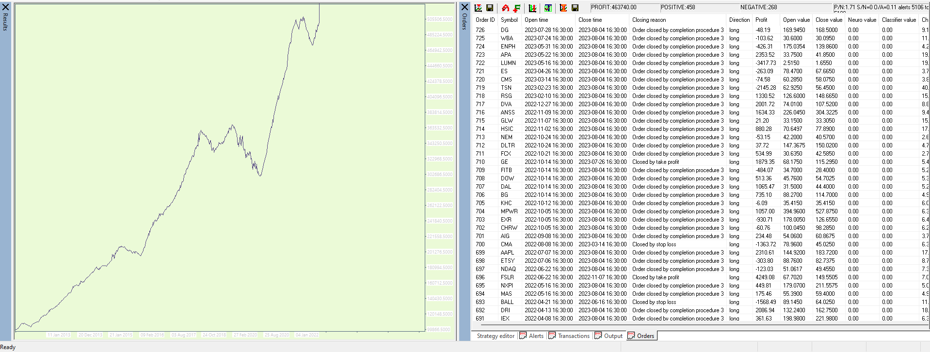 If you had invested $100,000 in the index in 2010, by 2023, your balance would have been $401,056, resulting in a profit of $301,056. Conversely, by trading the same pattern and following the provided trading rules, you would have made a profit of $463,740.